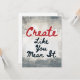 Una hermosa obra de arte con la letra tipográfica "Crea como lo quieres decir". Es beige y gris con texto negro y rojo y acento blanco debajo de la cita.