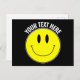 Haz, Crea, Diseña Tu Propia Tarjeta Postal Amarilla Del Lema Editable Del Personalizado. Diseñado por SMILIEWEAR™. DISEÑO OPTIMIZADO PARA DISEÑO HORIZONTAL CON PEQUEÑAS OPCIONES DE TEXTO DE TAMAÑO Y COLOR OSCURO. Agregue su propio texto o elimine texto para producir su propia postal sonriente única. Una postal divertida y feliz. ¿Qué podría ser mejor que una postal con una sonrisa?