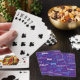 Cree un atractivo mazo de cartas con su nombre especial repetido en diferentes tipos de letra y colores sobre un fondo morado.