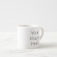 Crea tu propia taza espresso personalizada con tu imagen personalizado. Añade tu foto, diseño o arte favorito para crear algo realmente único. Para editar esta plantilla de diseño, haga clic en 'Cambiar' y cargue su propia imagen como se muestra arriba. Haga clic en el botón "Personalizar" para agregar texto, fuentes personalizares y colores. ¡Trate o haga el regalo perfecto para la familia, amigos, padres y abuelos!