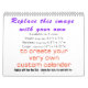 Crea tu propio calendario personalizado - Hemos hecho esto TAN fácil, simplemente reemplaza las imágenes con las suyas, agregamos el tamaño de las imágenes que debes usar dependiendo del tamaño del calendario que quieras - Haz tu propio calendario personalizado - Añade tus propias fotos, ilustraciones o diseños a este Personalizado Crea tu propio calendario - Añade texto también - cambia tipos de letra, tamaño y colores de los tipos de letra para satisfacer tus necesidades. Asegúrese de ver las caídas de las opciones de referencia cultural, vacaciones, fecha de inicio, tamaño, color de enlace, etc. todas las opciones del lado derecho antes de realizar el pedido: