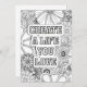 El ilustracion dibujado a mano de color listo para crear una vida que te guste, con fondo floral de estilo doodle, y puede ser mejorado por el remitente o el destinatario. El material de cartón sólido puede manejar plumas de gel, marcadores, lápices de colores y más. Perfecto para cumpleaños, tarjetas de agradecimiento, o incluso para encuadrar una vez que ha sido coloreado.