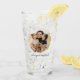 Create your own custom photo glass tumbler. This cup features two of your favorite pictures in a circle shaped watercolor brush stroke frame and personalized text for any occasion. A great gift for family and friends or your own photo memory keepsake.