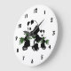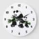 Panda mama sentada comiendo bambú mientras el bebé lo hace como el bebé panda ve