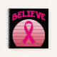 Diseño de cinta rosa estilo retro con el texto "Believe".