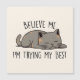 Captura el encanto identificable de la relajación con esta tarjeta de saludo '¡Cree en mí, estoy haciendo mi mejor esfuerzo!' ¡Con un adorable gato durmiendo acurrucado en una pose acogedora, esta obra de arte encarna perfectamente el esfuerzo que todos hacemos, ¡incluso mientras dormimos! Un regalo encantador para los amantes de los gatos y cualquiera que disfrute un poco de humor en su rutina diaria.