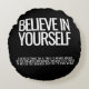 Añade un toque de motivación a tu espacio con esta almohada negra, hecha a partir de un suave poliéster cepillado para comodidad y estilo. El mensaje edificante "Créante en ti mismo" está emparejado con una cita inspiradora acerca de confiar en tu propia fuerza, haciéndolo un acento perfecto para salones, dormitorios o espacios de trabajo. Esta almohada fomenta la resiliencia y la autoseguridad todos los días, lo que la convierte en un regalo ideal o accesorio para el hogar.