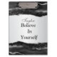 Este listado es un elegante portapapeles inspirador. Este listado permite colocar un nombre en la parte delantera del portapapeles. Además, este anuncio permite cambiar el mensaje inspirador a cualquier mensaje inspirador que elija. El nombre y el tipo de letra inspirador del mensaje se pueden cambiar en color, tamaño y estilo de fuente. Este anuncio hará un gran regalo personalizado para usted o para cualquiera que elija. Este portapapeles será excelente en la escuela, en la oficina o en cualquier lugar en el que tengan clientes o clientes.
