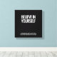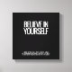 Refresca tu decoración con esta impresión de tela estirada mostrando el poderoso mensaje "Believe In You". Con una tipografía en blanco sobre un fondo negro profundo, esta obra de arte ofrece estilo y motivación para habitaciones, salones u oficinas. Debajo de la frase principal, una cita reflexiva recuerda a los espectadores la confianza en sí mismos: "Un pájaro sentado en un árbol nunca tiene miedo de que se rompa la rama, porque su confianza no está en la rama sino en sus propias alas". Este lienzo está diseñado para inspirar confianza y resiliencia todos los días.