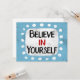 "Créante en ti mismo" es una linda cita inspiradora o motivacional con una forma de acento blanco rodeada de puntos caprichosos de textura blanca.