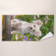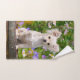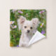 Un joven perro chihuahua de color crema y largo, sentado en un jardín florido, foto tomada por Katho Menden. Este conjunto de toallas de baño (toalla de baño, toalla de mano y paños) es un regalo para los amantes del perro.