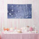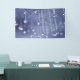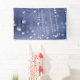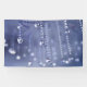 Las gotas de vidrio borrosas se reflejan claramente en las bolas de cristal con foco abrupto en primer plano. Las ramas plateadas de la candelabra y el suave ambiente azul y las luces dan un resplandor temprano en la noche a la pieza.