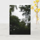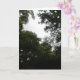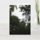 Esta hermosa tarjeta de felicitación tiene una fotografía tomada desde dentro de un denso bosque. La fotografía muestra la oscuridad de los árboles y una pequeña zona de cielo gris. El resultado es una escena espeluznante y evocadora.