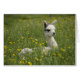 Alpaca bebé sentada en un campo de mariposas.