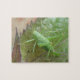 Cricket verde en un rompecabezas de hojas