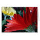 Cercano y personal con una flor de margarita roja y profunda de Gerbera con una amarilla en el fondo. foto de cierre en un matraz. Esta imagen se puede transferir a otros productos. Puede personalizar de un mensaje en el interior utilizando los diferentes estilos y colores de fuente de Zazzle o quitar el texto y dejarlo en blanco. Si necesitas ayuda, por favor no dudes en contactarme, y estaré más que contento de ayudarte. Puede contactarme en KarenCoffelt@wolfmoonartanddesign.com. Derechos de autor originales de la fotografía 2017 de Karen Coffelt.