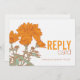 Dibujo de flor gráfica de crisantemo floral con superposición de color gráfico para tarjetas de respuesta de boda de otoño. Edite estas tarjetas con sus propias palabras. Perfecto para bodas de finales de verano, principios de otoño, o para una boda con tema de jardín floral naranja, verde, marrón y blanco, o aniversario de bodas con tema floral. Invitaciones y otros artículos de boda a juego disponibles. Dibujo único y arte gráfico y diseño por Sarah Trett. www.sarahtrett.com para www.mylittleedenweddings.com