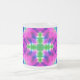 Una taza de vidrio esmerilado cuadrada brillante y colorida.