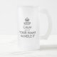 Manténgase tranquilo y déjelo manejar la taza de vidrio de cerveza congelada. Plantilla moderna de tipografía con corona. Diseño de color personalizado. Crea tu propia calma y sigue con las citas. Divertida idea de regalo de cumpleaños para compañeros de trabajo, papá, mamá, esposo, esposa, colega, jefe, empleado corporativo, mejor amigo y otros. Regalos de humor de oficina para hombres y mujeres.