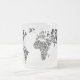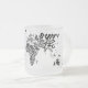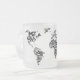 Mapa del mundo tipográfico sin la Antártida. Una taza inspiradora para los amantes de la tipografía y de la lengua alemana.