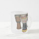 Esta taza tiene 3 tambores del djembe en un lado y un diseño del tambor con la fraseología en el otro lado. La fraseología es el viejo chiste de la situación dentro de círculos del tambor/de la danza de la "mina es más grande".
