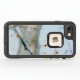 Un sorprendente contraste con tu teléfono moderno es el grueso panel de vidrio rajado y rojizo.
