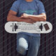 El monopatín ofrece la Sagrada Biblia junto con la paloma, cruz, un paso. Pescados de Jesús y una cita. (Las ruedas pueden cubrir algo del paso)