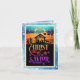 "Cristo El Salvador Ha Nacido" Tarjeta de Navidad con puesta de sol del Nacimiento