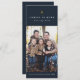 Esta tarjeta vertical de vacaciones de una sola foto muestra el tradicional saludo de la Natividad Cristiana Ortodoxa - "¡Cristo nació! ¡Glorify Him!" contra el azul marino con una estrella de oro. Personalizar tu foto y texto. La espalda azul marino también presenta un patrón de cielo estrellado nocturno.