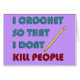 Una lengua en lema de la mejilla "que crochet de modo que no mate a gente" con un gancho de ganchillo del dibujo animado.