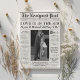 Saludos al amor - esta invitación casera clásica al estilo del periódico "The Newlywoed Post", única y de moda, con 3 fotos en blanco y negro, titulares pegadizos e historias de temas en columnas editoriales y titulares de Love Is In The Air, presenta una cronología o itinerario especial del día de la boda con iconos infográficos y lindos bodas, citas de parejas felices, nuestra historia de proposiciones, sitio web boda e instrucciones rsvp digitales. Personaliza la redacción y reemplaza con la tuya propia, sube fácilmente tus fotos e incluso edita la ubicación de los componentes de diseño más allá, o agrega tu código QR al reverso, haciendo clic en el botón azul "Editar usando herramienta de diseño" en la parte inferior de la ventana "Personalizar"! Acceda a la pestaña "capas" de la columna de la izquierda de la pantalla de edición, seleccione la capa frontal o posterior, a continuación pulse sobre el elemento que desea cambiar y haga que sus propias peticiones y preguntas de diseño personalizadas de H siempre sean bienvenidas - haga clic en el botón "mensaje" o envíe un correo electrónico a figandlilyco@gmail.com. Las fotos se utilizan únicamente con fines de marcador de posición y deben sustituirse. El diseño es creado con cariño por Fig y Lily Studios, y el crédito de la foto del compromiso de nuestra hija va para IG: @laurenmargaretphotography