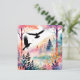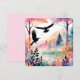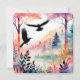 Añade tu propio saludo a este hermoso y colorido bosque acuático con 2 cuervos volando tarjetas planas AI ART CREADO POR MINX267