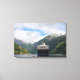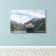 Imagen de lienzo de un gran crucero en el estrecho fiordo Geirangerfjord con grandes montañas alineadas en el fiordo, visto desde la aldea de Geiranger en Noruega.
