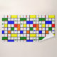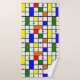 Este conjunto de toallas incluye un lavabo azul, una toalla de mano amarilla y una toalla de baño con un diseño moderno de mediados de siglo de una cuadrícula de cuadros y rectángulos de colores. También tiene círculos de colores colocados en las líneas de la cuadrícula. Si te gusta el diseño pero prefieres colores diferentes, envíame un mensaje.