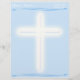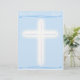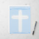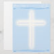 El membrete presenta un diseño de cruz blanca brillante sobre fondo azul. Personaliza con tu nombre y dirección. Letras blancas.