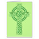 Características del este diseño una cruz céltica verde en un modelo de nudo.