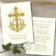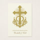 Celebra el Sacramento de la Matrimonía Santa con esta elegante tarjeta de oración de los bodas católicos. Con una cruz de oro radiante entrelazada con bandas de bodas y rollos ornamentales, el frente dice "Unidos en el Corazón de Jesús" por encima de los nombres de la novia y el novio. Dentro, una reverente bendición nupcial invoca la gracia de Dios y la intercesión de la Santísima Virgen María. Un bello recuerdo del día de la boda, perfecto para los invitados católicos, favores de oración o una devoción nupcial.