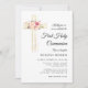 Diseño floral moderno con flores acuáticas y cruz dorada. Los colores y el texto se pueden personalizar.