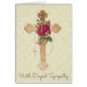 Que esta hermosa tarjeta de condolencias con una cruz dorada, rosas rojas y Santo Rosario exprese tu amor y preocupación sinceros.