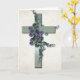 Cruz Verde con tarjeta de saludo de flores moradas