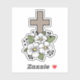 cruz de bonito con ramo de flores blancas. Pegatina para laptops, dispositivos, diarios y más.