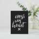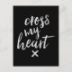 Postal inspiradora que muestra la frase "Cruzar mi corazón" en escritura de pincel blanco con una textura de tinta orgánica para lograr un auténtico aspecto con letras a mano.