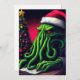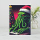Imagen de estilo ilustrado de Cthulhu sentado en un escritorio cerca de un hermoso árbol de Navidad. Cthulhu Claus está revisando su lista traviesa y fantasmal, listo para el tiempo de Creepmas. ¿Estás en la lista?