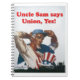 El tío Sam dice, "unión, sí!" el cuaderno exhibe un poster del vintage de la Segunda Guerra Mundial.