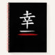 A minimalist Japanese-style notebook featuring the kanji 幸 (Happiness / Good Fortune) in bold white calligraphy on a deep black background.