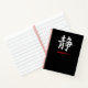 This minimalist black notebook features the Japanese kanji 静, symbolizing silence, calm, and inner peace.
