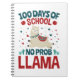 Divertidos 100 días de diseño escolar con imágenes de llama y juego de palabras para profesores o estudiantes.