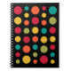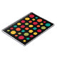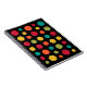 Un diseño compuesto por cinco columnas de siete manchas circulares ordenadas por tamaño y dispuestas en direcciones alternas en un bonito palet de colores.