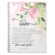 El diario de cuaderno de escritura inspiradora cita muestra un diseño de acuarela floral elegante con magnolias rosas y vegetación. Presenta los Versos de la Biblia 1 Corintios 13:4-8, "El amor es paciente, el amor es amable. No envidia, no presume, no está orgulloso. No es grosero, no es egoísta, no es fácilmente molesto, no tiene antecedentes de errores. El amor no se deleita con el mal sino que se regocija con la verdad. Siempre protege, siempre confía, siempre espera, siempre conserva. El amor nunca falla".