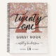 Cuaderno de Huéspedes de 21 Años para Chick Moderno. Diseño con textura purpurina brillante de champán, veintiuno en escritura a mano a la moda en color oro negro y rosa. Personalice sus datos en letras mayúsculas.
